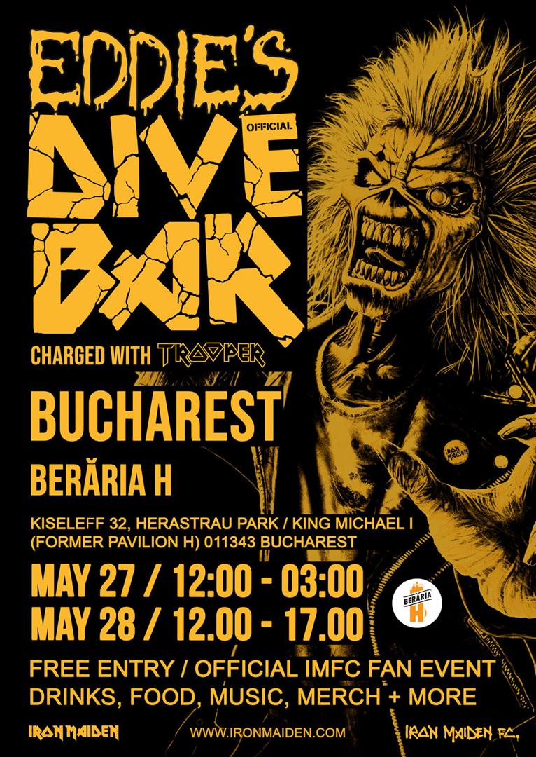 Eddie’s Dive Bar – Official IMFC Event transformă Berăria H într-un adevărat sanctuar al heavy metal-ului 🔥 Două zile de vibe autentic și distracție alături de fanii Iron Maiden.